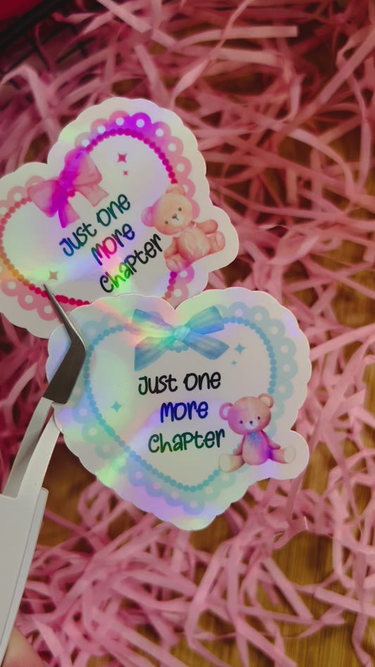 Adorable 'just one more chapter' holographic heart Stickers – Cute Bookish Gift for Readers and Collectors