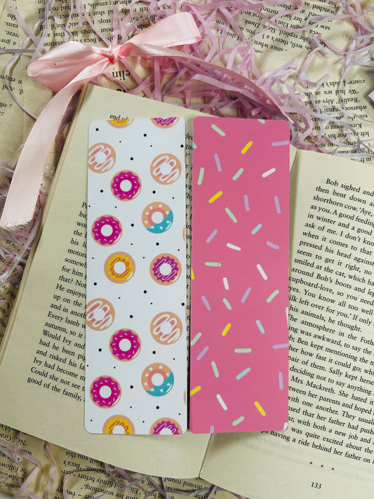 Cute Donut Bookmark – Whimsical Double-Sided Laminated Bookmark with Optional Tasse