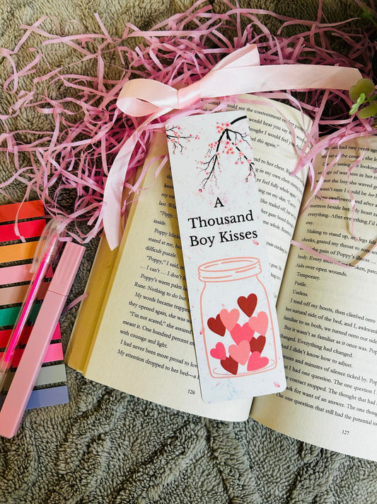 Romantic 'A Thousand Boy Kisses' Bookmark Set with Cherry Blossom Design
