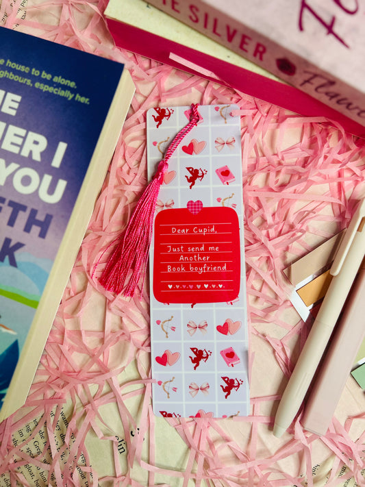 Dear cupid Valentine’s Bookmark with Tassel – romance bookmark, Cute Book Lover Gift, pink bookish bookmark, book boyfriends