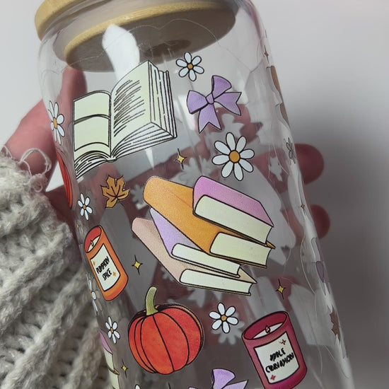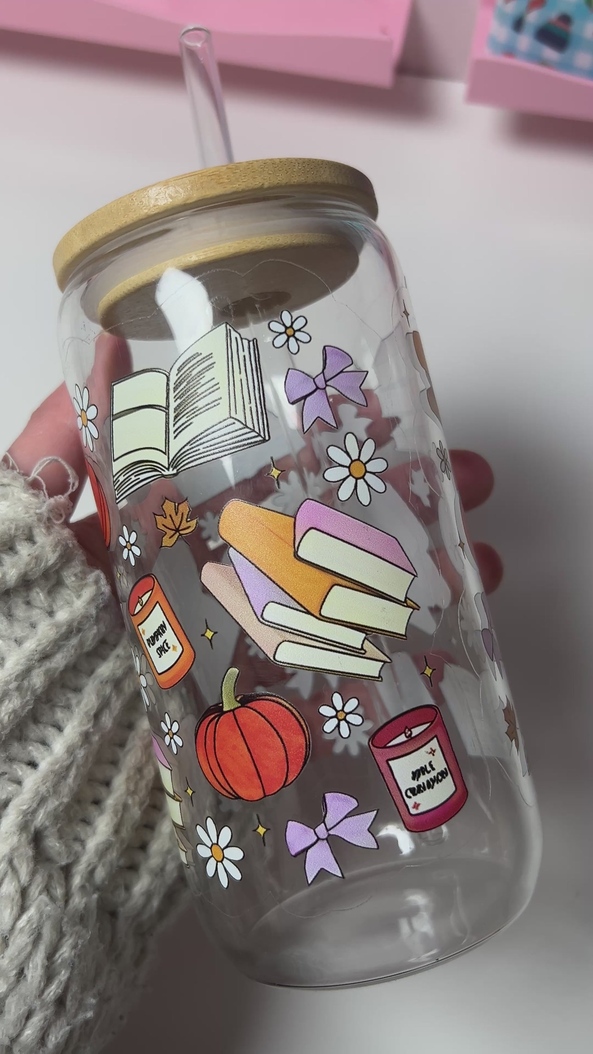 Sip your autumn vibes with this Cosy Pumpkin Spice glass cup, perfect for book lovers, fantasy readers, and anyone who loves seasonal treats.