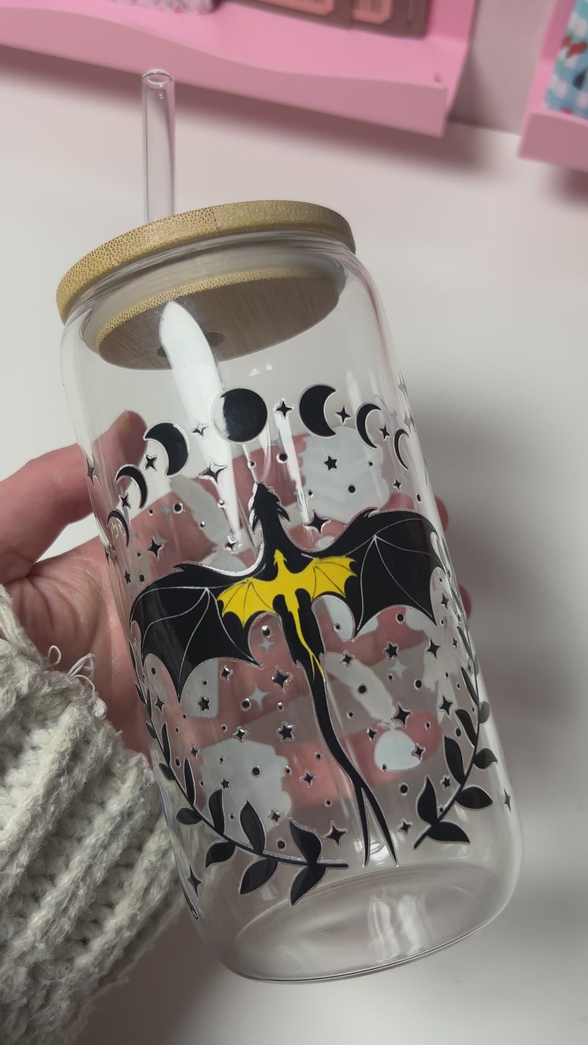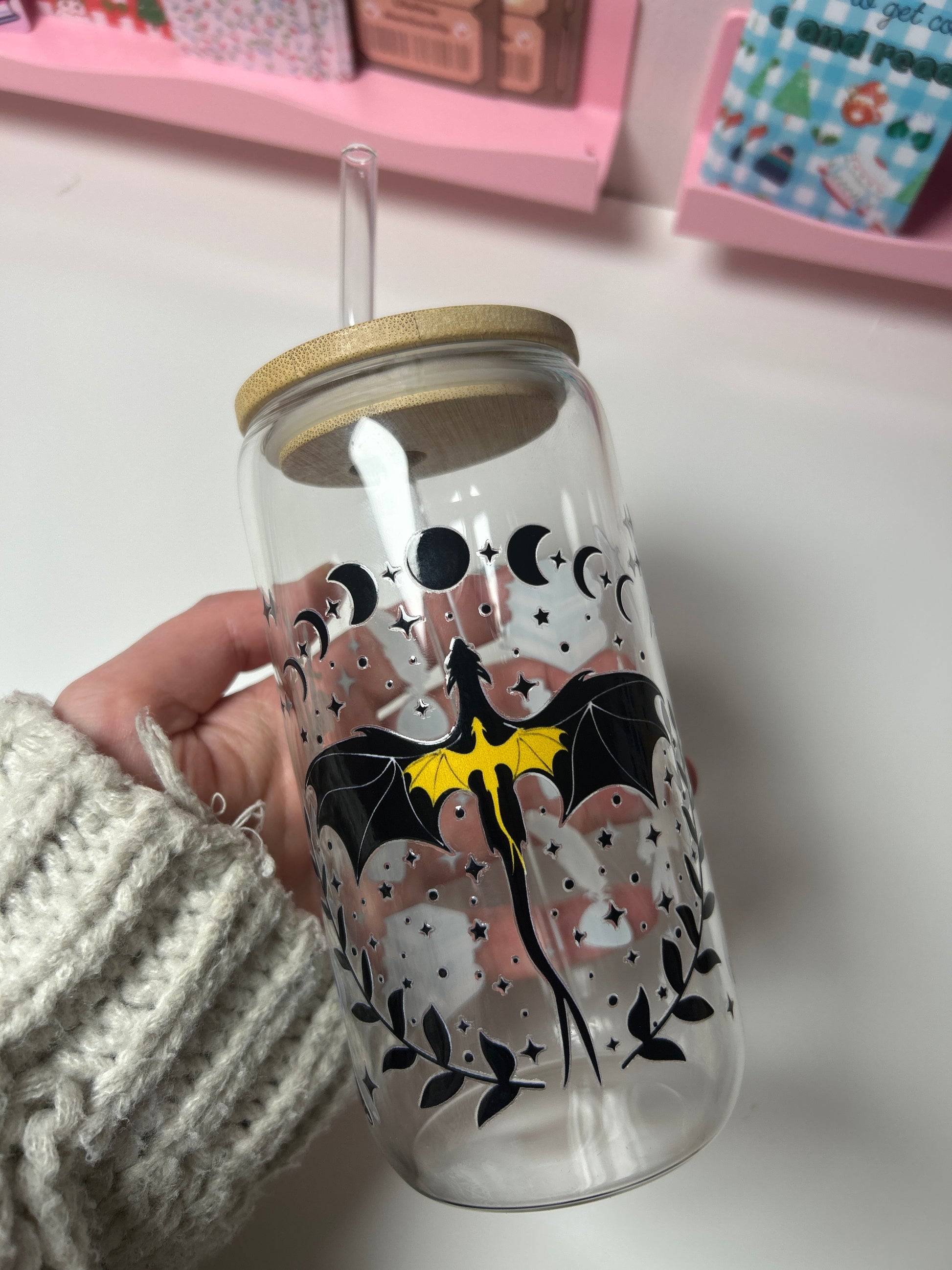 Bring a touch of Basgiath War College to your reading nights with this Fourth Wing–inspired glass cup, designed for iced coffee lovers, fantasy readers, and dragon-rider obsessives.