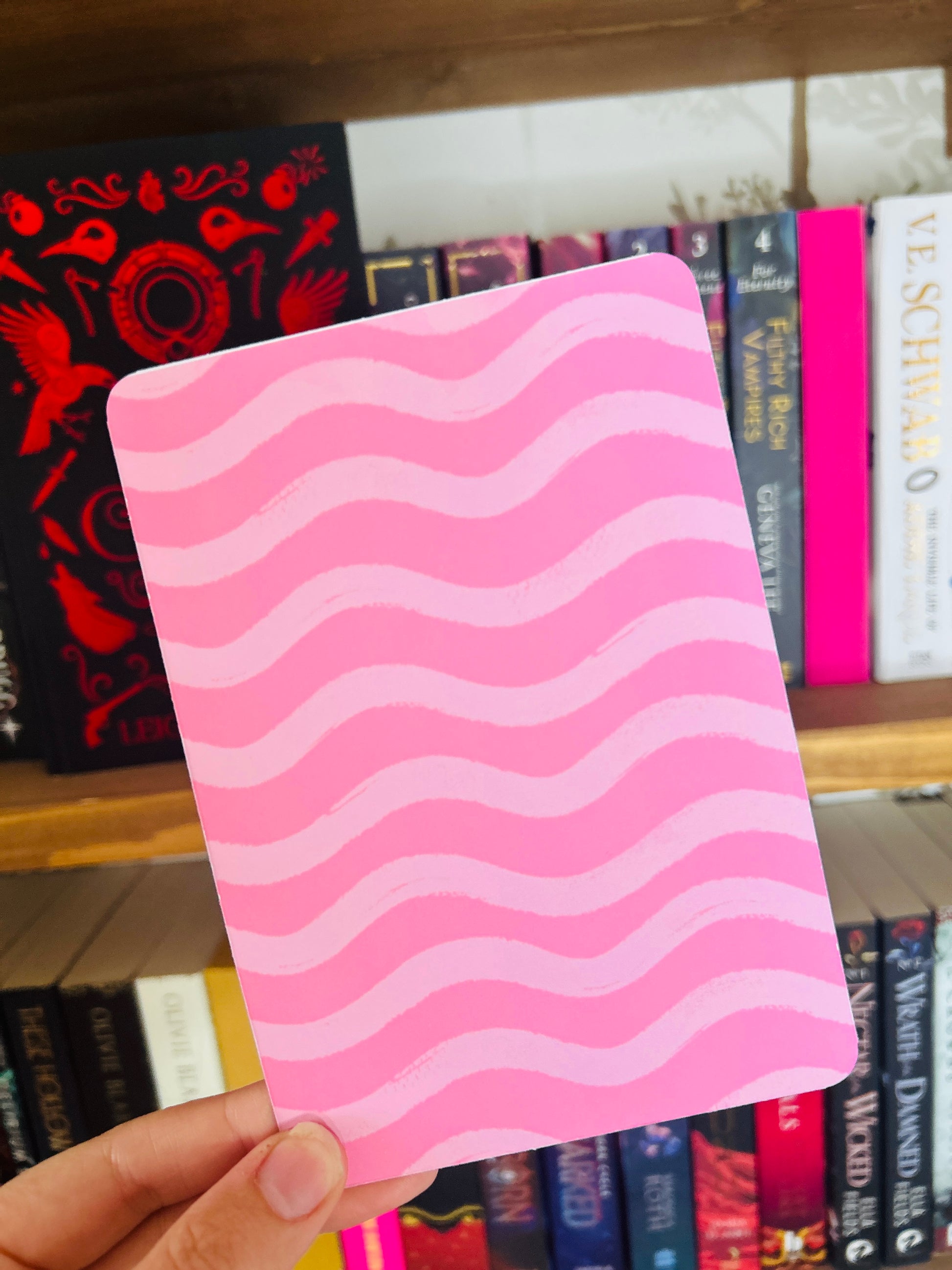 Other side has a pink swirly pattern – perfect as a background for stickers