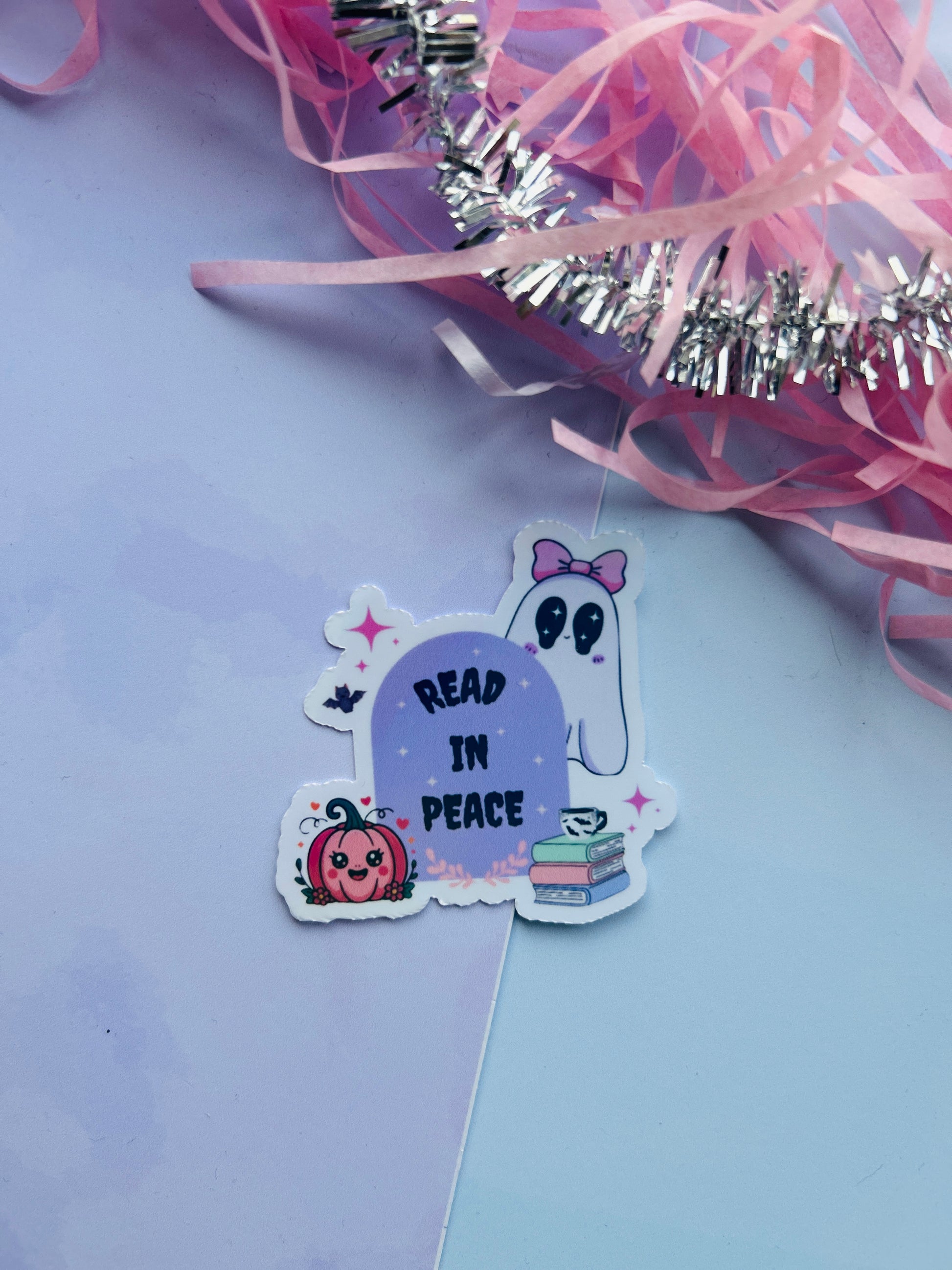 Read in Peace Holographic Sticker – Cute Ghost Bookish Vinyl Decal